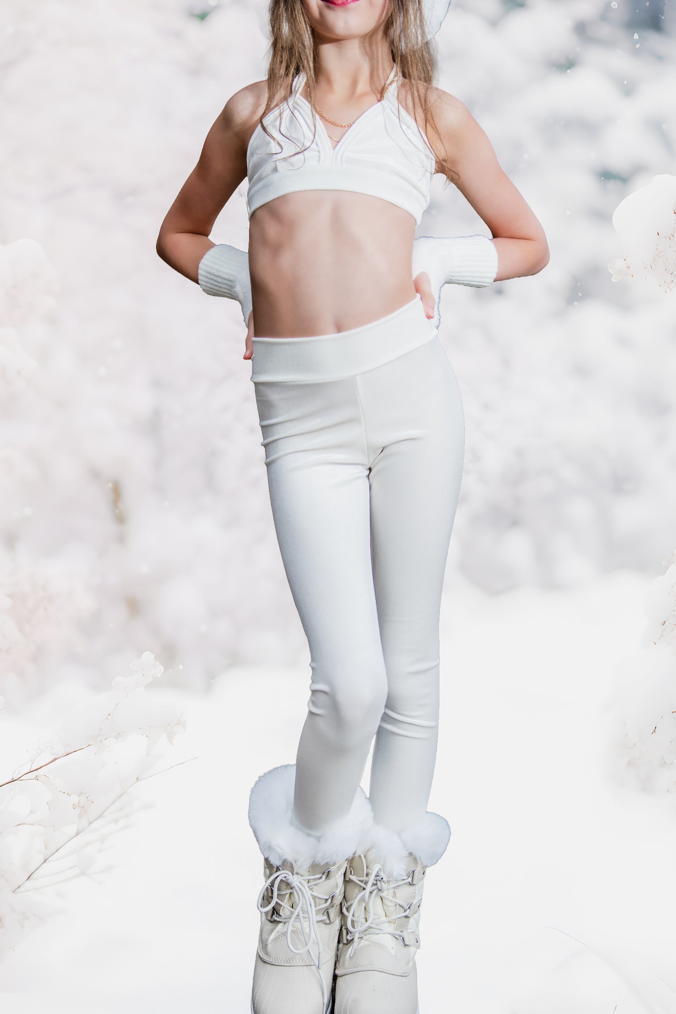 Bella Velvet Bodysuit Leggings - Winter Whites