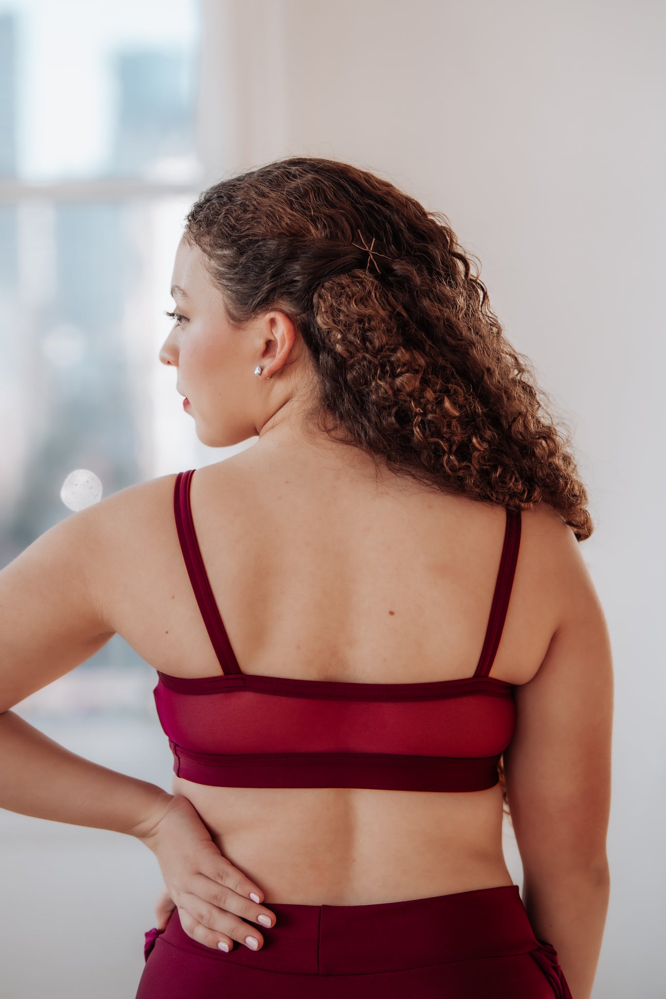 Lycra top with mesh folding detail and mesh back. Appliques shown on lilac not included. Email for pricing to add. Custom made costume cannot be returned or exchanged.